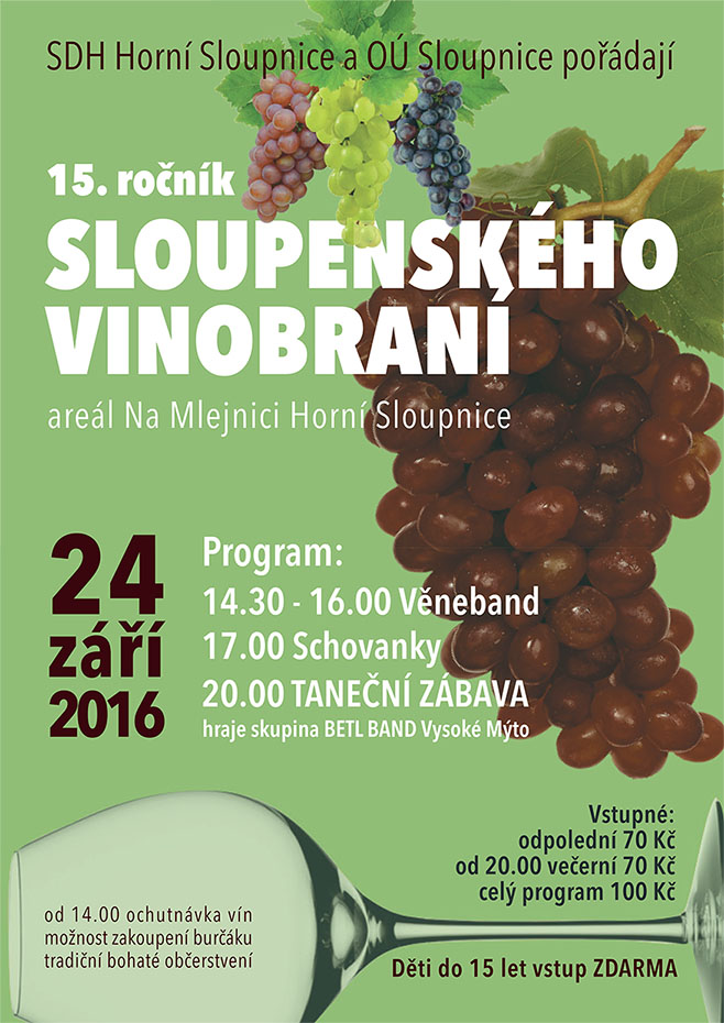 Srdečně Vás zveme na 15. roční Sloupenského vinobraní v areálu Na Mlejnici konaném 24.9.2016