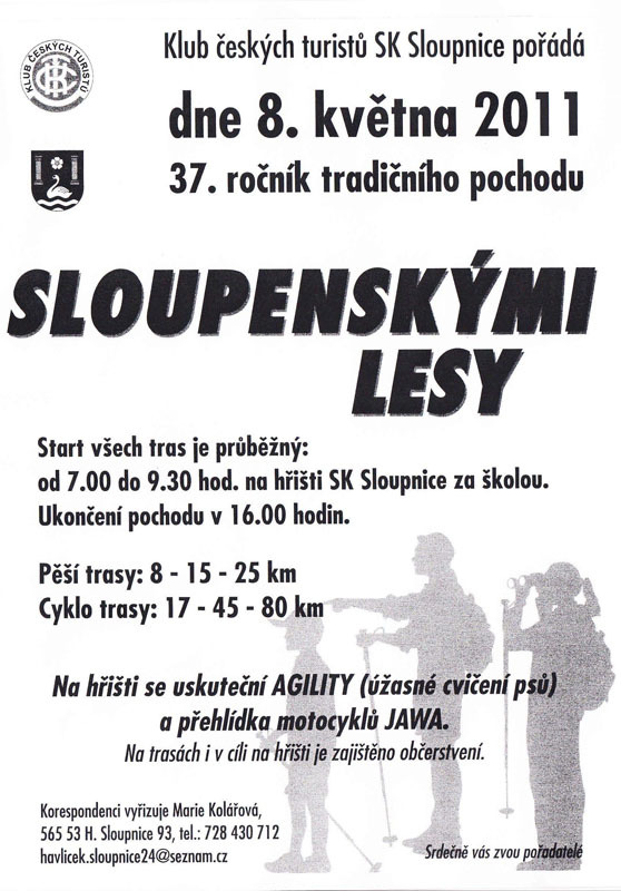 Klub českých turistů SK Sloupnice pořádá DNE 8. KVĚTNA 2011 POCHOD SLOUPENSKÝMI LESY.